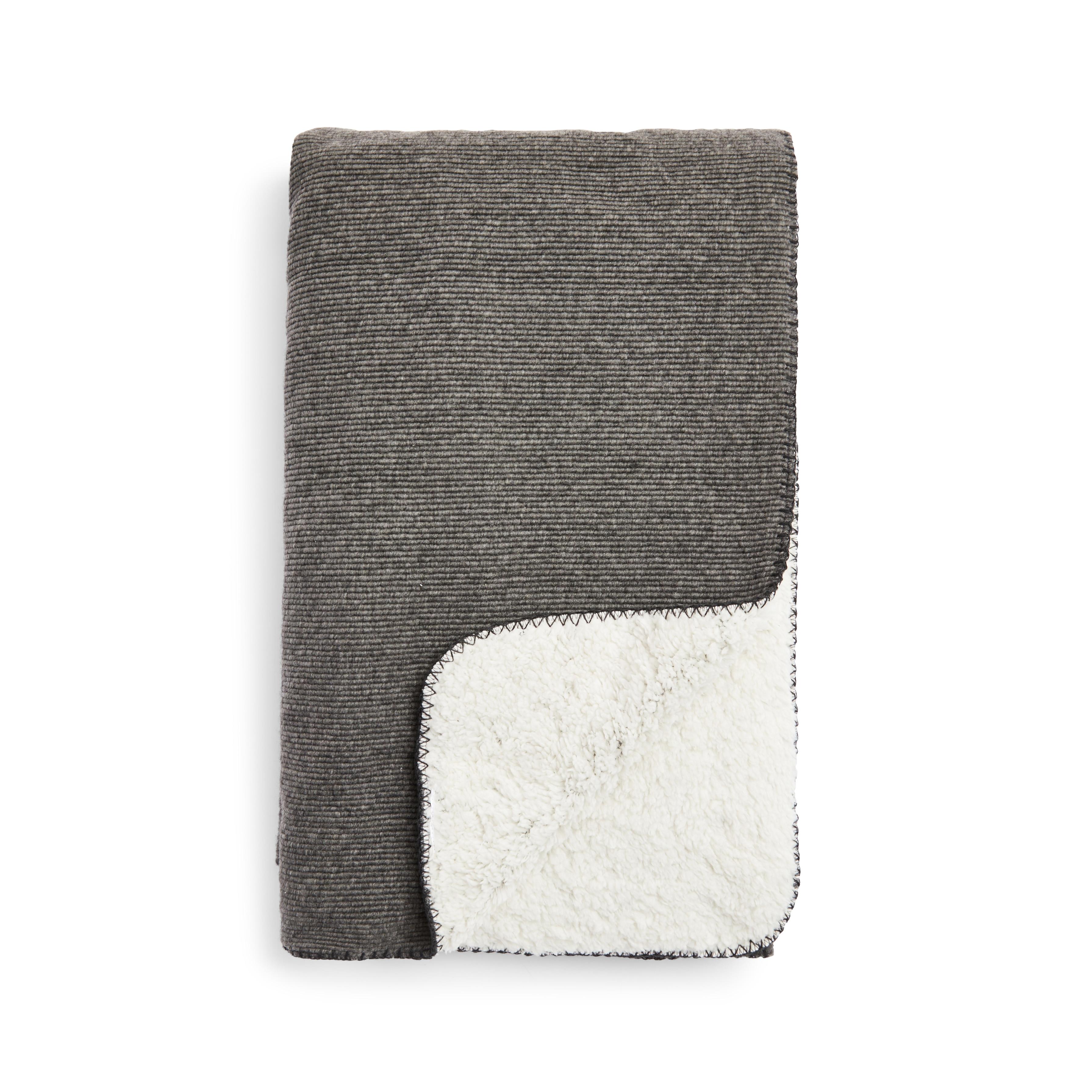 Small Grey Ribbed Knit Sherpa Throw Throws & Blankets Home